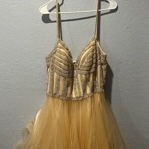party dress size large gold color Never used, has corset, is new without tag, consider the measurement