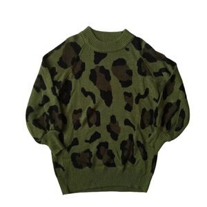 Vestidos Green & Black Leopard Print Tight Knit Pullover Sweater Women's Size X