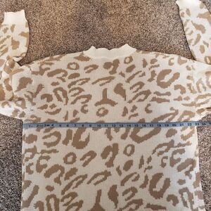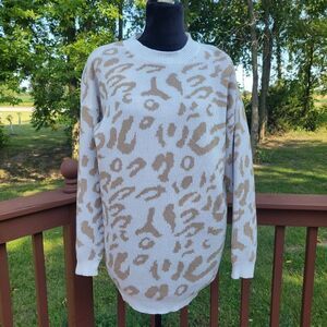 Vestidos Ladies Khaki White Leopard Print Oversized Crew Neck Sweater sz Med