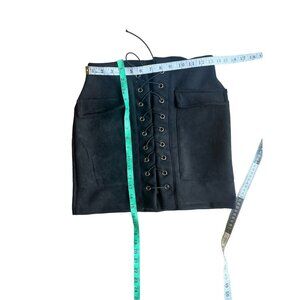 Vestidos Women's Lace Up Faux Suede Mini Skirt in Black with Hidden Zipper in back for closure and Two Front Pockets. (sku11)