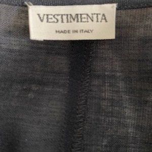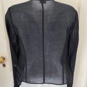 NWT Vestimenta classy, elegant, lightweight, sheer, 2 covered buttons, long sleeve top/jacket/cardigan, black, 50% rayon, 25% wool, 25% mohair. Wear over a camisole, blouse or dress. Size 4-6. Comes with an additional button. Made in Italy. No pulls, flaws or smell. Ask for measurements.
