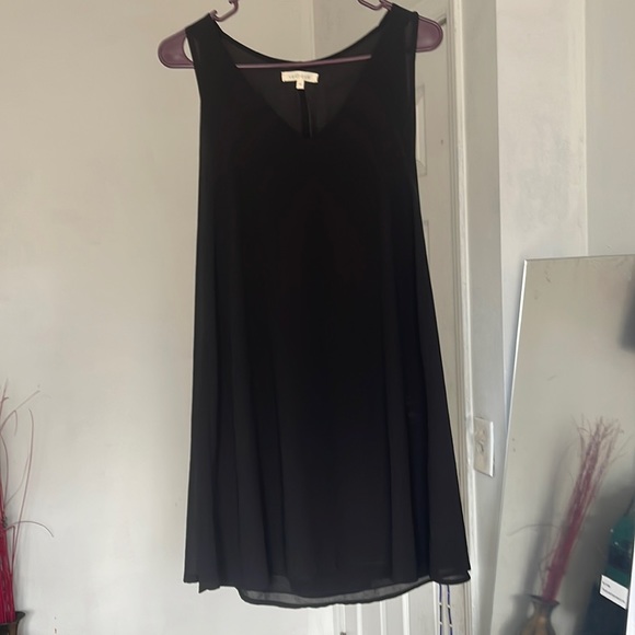 Black dress with a cape style back. Dress is mid thigh length. NWOT