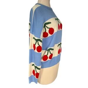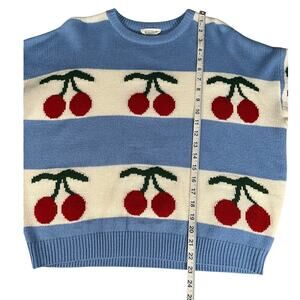 Vestique Cherry Sweater XS Blue Cream Cozy Knit Playful Y2K Cottagecore Cozy