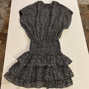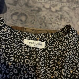 Vestique Black & Gray Ruffle Dress. Cheetah print with gold flakes. 3