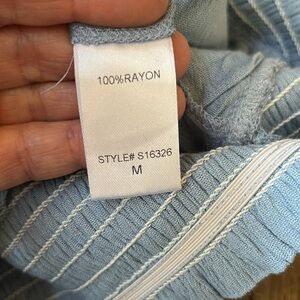 Vestique Stand Out Ruffle Skort NWT. Pretty blue color with wide elastic waist and attached shorts. Light denim color. Size Medium