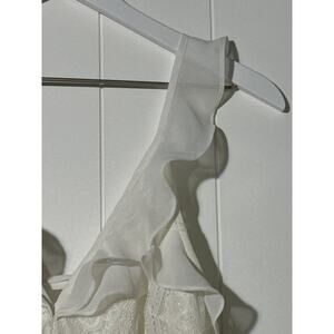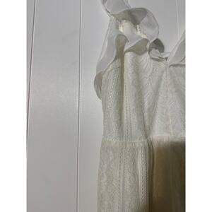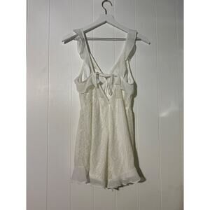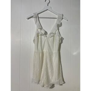 Vestique White Lace Romper Ruffle Sleeve Open Back Summer Chic Style Medium