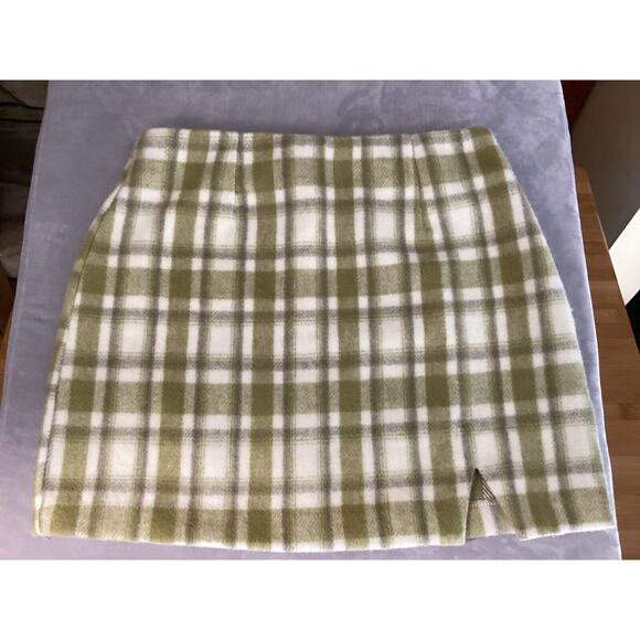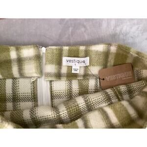 Vestique Women‎ Mini Skirt Sage White Plaid Size L Wool NWT