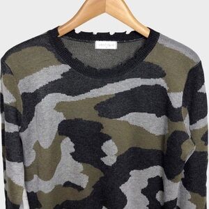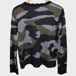 Vestique Green and Gray Distressed Crewneck Sweater Camo Print