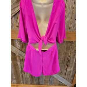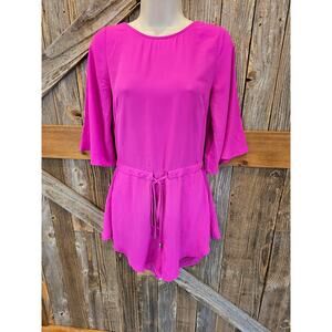 Vestique size medium fuchsia pink open back Jumper romper shorts lined EUC