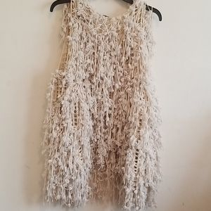 A knit off-white tassel vest. Definitely your thing if you're going for a more western or even vantage look. Its a fun quirky and a delightful statement piece.