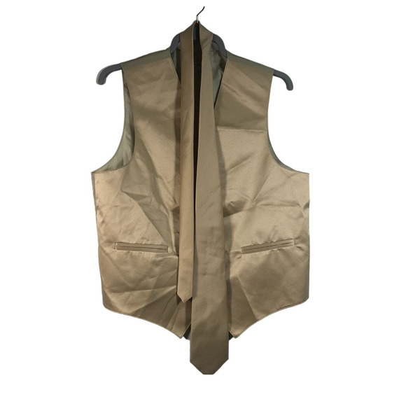 Vesuvio Napoli Suit Vest with Matching Neck Tie, Men's Size S - Beige