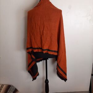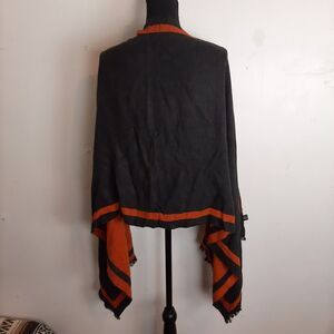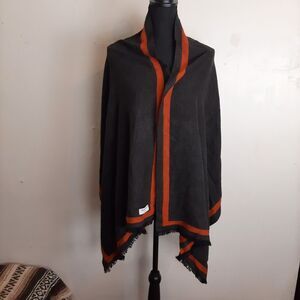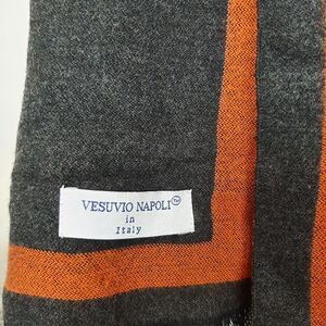 Vesuvio Napoli Wrap Scarf Gray Orange Soft Viscose Fringed 82"X23" Italy Italian