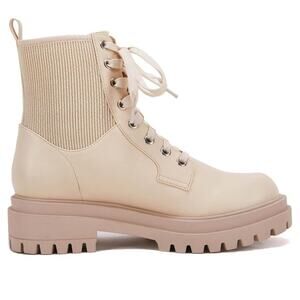 Vetaste Women’s Lug Sole Lace Up Ankle Boots Chunky Block Heel Combat White SZ 9