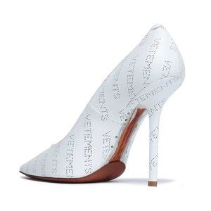 These heels from Vetements are an iconic style. Leather perforated logo upper. Revealed bottom. Made in Italy. 100% Authenticity Guaranteed. Brand new in box, with dustbag.