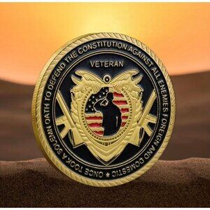 This challenge coin is a meaningful tribute to veterans and their service. The design features a powerful message of support and appreciation for those who have served our country. It's a high-quality coin that would make a thoughtful gift for a veteran or anyone who supports our troops.