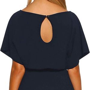 The short sleeve romper features its high waisted style and back keyhole design. Batwing sleeve playsuit. Rompers for women.