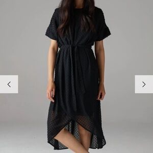 Incredible versatile dress from Women-owned company Vetta. Wear it as a slip dress, a slip dress with a duster, just a duster, a v-neck dress, a wrap dress, a straight neck dress with gathering detail in front, a belted dress, not belted... possibilities are endless with this one. Excellent condition. Made from Recycled materials. If you don't know this brand, look it up! Hardly worn.