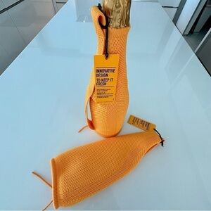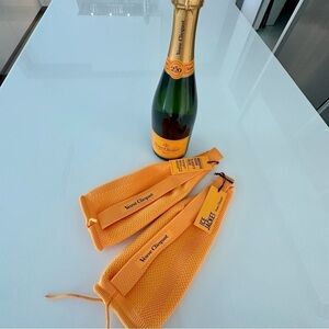 Veuve Clicquot Champagne Ice Bucket Bags (Set of 2). A great way to “gift” a bottle of Champagne to friends or family or to simply keep your champagne chilled after opening with its innovative design to keep it fresh for up to 60 minutes! Pull on closure with secured ties at bottom and convenient carrying handle. Measurements: 11.5x4.5. Brand new and never used. *Champagne Not Included.
