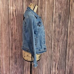 Vevel Jean Jacket, Y2K Vibe with Large Crisscross Stich Detail, Sz Medium