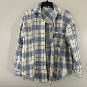 Veveret Blue Cream Plaid Shacket Flannel Jacket Fall Spring Comfy Casual Large
