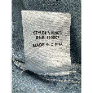 Veveret Denim dress for women, size large. It has pockets and studded accents. Great, clean condition. Worn 2 times. No stains. All of the distressing is part of the manufacturer's design and not flaws. Smoke free/pet free. Please see all photos for details with measurements, and ask any questions. Orders are shipped out daily, Monday – Friday.