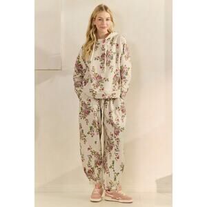 Veveret Size Medium Beige Floral Printed French Terry Pants