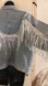 Veveret blue denim sequin fringed distressed jean jacket size medium brand new