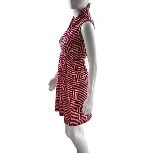 Vfish Designs Geometric Print Dress S High Neck Collar V Neck Minimalistic NWT