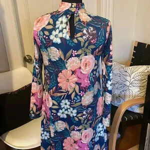 Vfish hi collar retro mod floral lightweight longsleeve dress small NWT