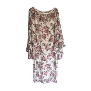 Vfshow Floral Party Sheath Dress Bell Sleeve Victorian Womens Sz XXL 2X Gorgeous
