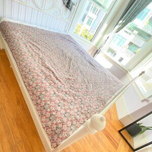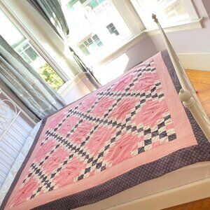 Vintage USA Handmade Reversible Patchwork Quilt Floral Cottagecore Pink Brown Blanket Throw Couch Cover