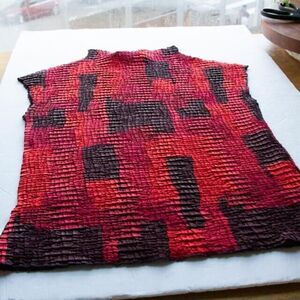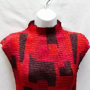 Vgt Rafael Y2K Blood Red & Black Gothic Crinkle Sleeveless Mock Neck Stretch Top Size S