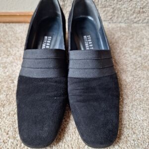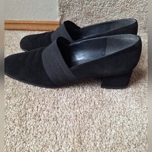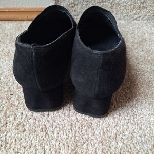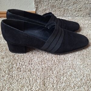 Vgt STUART WEITZMAN Size 9.5 Gorham Chunk Heel Witchy Shoes Suede Black Y2K 90s Heel height 1.5" measurements are approximate