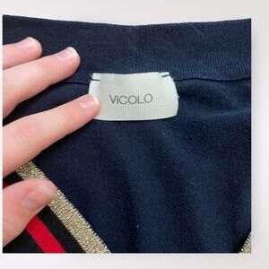 ViCOLO Cardigan Sweater Womens Size Small Blue, Red, Gold