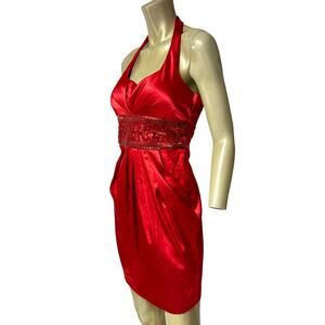 ViNTaGe Y2K Red Satin Femme Fatale Halter Dress 9/10