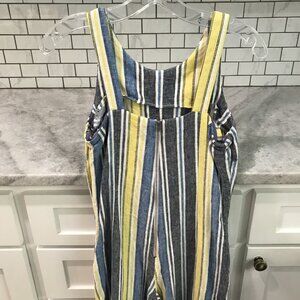 ViVi by Violet Weekend Jumpsuit Womens 4 Blue Yellow White Striped Sleeveless Zip