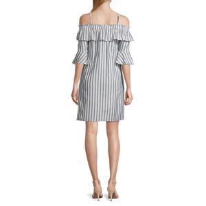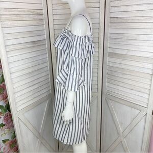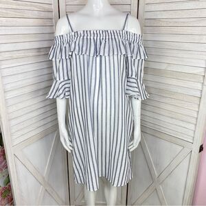 ViVi by Violet Weekend Striped 3/4 Ruffle Sleeve Cold Shoulder Shift Dress M NWT