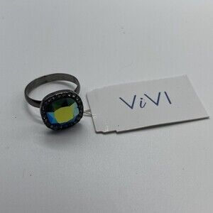 1-Gun metal with a mystic topaz looking faceted square stone and surrounded by clear stones. Retails for $28