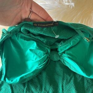 The Firenze Erin short dress from ViX is made from ViX's stretchy crepe effect fabric which will mould to fit the body. Mini length and with thin shoulder straps and knot detail at the centre cups.