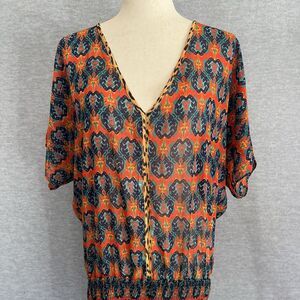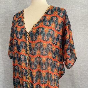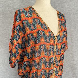 Sofia x ViX Paula Hermanny Tajik Block Print Beach Swim Coverup Small Fringe Boho Caftan