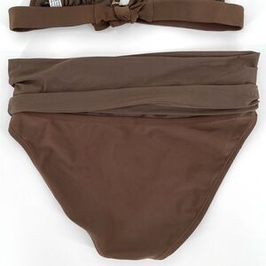 The triangle top has embroidery and beaded detail. Lightly lined. The bottoms are high waisted and still has the hygienic liner attached.