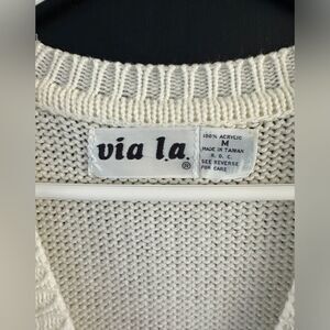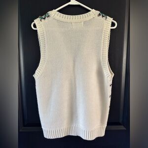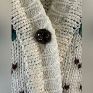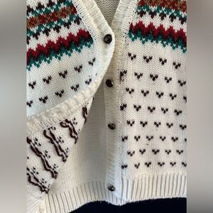 Via La 70’s Knit Button Down Sweater Vest Bone white red green brown Size Medium