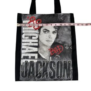 Features: Via Penny Lane Reworked Apparel Michael Jackson BAD ‘88 Black Canvas Tote Bag