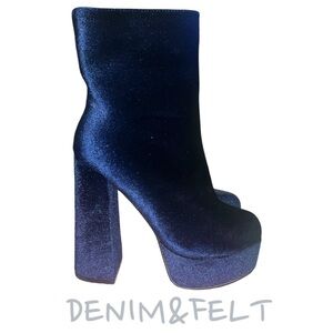 Via Pinky Collection Blue Velvet Block Heel Boots/Booties | NEW/NIB!!💙💙