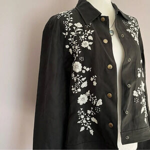 đź–¤Elevate your wardrobe with this stunning Via Seta black jacket. Crafted from a luxurious 50% silk and 50% linen blend, this piece combines sophistication and comfort. The jacket features intricate white floral
