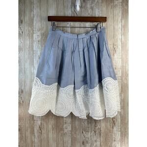 Via Seta Pale Blue 100% Silk A-Line Skirt Womens sz 10 White Eyelet Hem Pleated