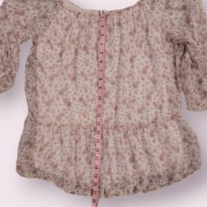 Via Signor Light Pink Floral Print Double Layered Silk Peasant Blouse - Size Med