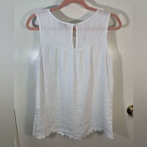 Via Signoria EUC white floral lace trim linen tank top Size medium