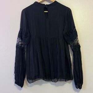 Via Signoria Italy Silk Lace Long Sleeve Black Blouse Sz Medium Whimsigoth Boho