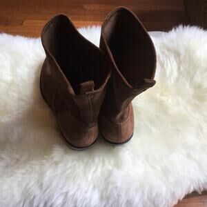 Via Spiga 8M Fora Brown Suede Short Boots Stacked Heel Pull On Western Style